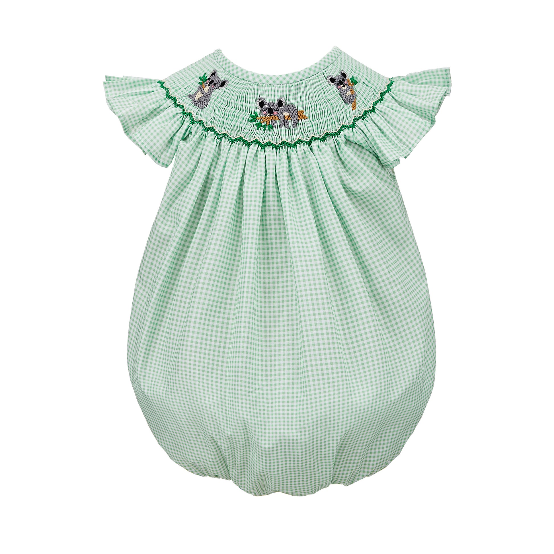 Elevate charm with our Bubble, adorned with hand-smocked three Koalas and delicate flutter sleeves. This enchanting ensemble strikes the perfect balance between comfort and adorable style, making it ideal for your little one's playful adventures.